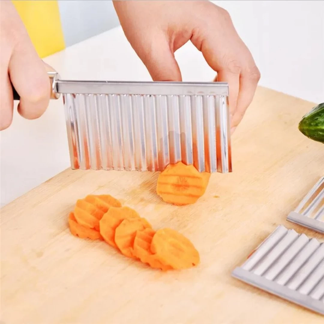 Cuțit ondulat cu multiple întrebuințări, ideal pentru tăierea cașcavalului, fructelor și legumelor în felii decorative.