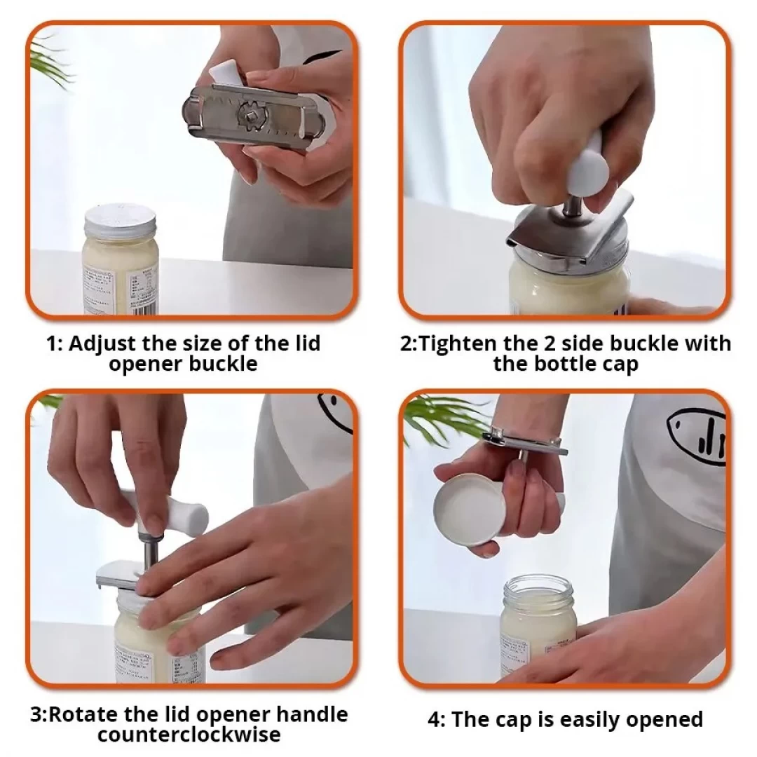 PRODUS: Deschizator reglabil de borcane din otel inoxidabil pentru cutie de sticle de 1-4 inci. Va rugam sa vedeti dimensiunea capacului borcanului.