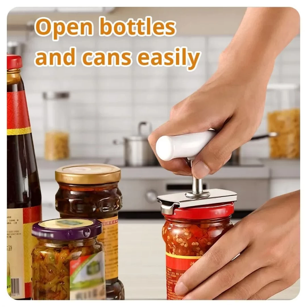 Cu aceste ustensile simple, puteti deschide cu usurinta capacul sticlei in cateva secunde! Dintii de otel de pe clema prind strans marginea capacului incapatanat si il tin pe tot timpul in care rasuciti. Deschide cu usurinta majoritatea borcanelor cu o simpla rasucire!