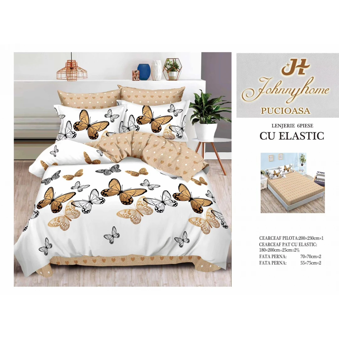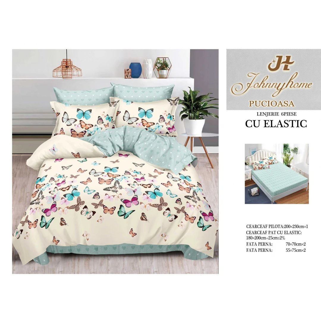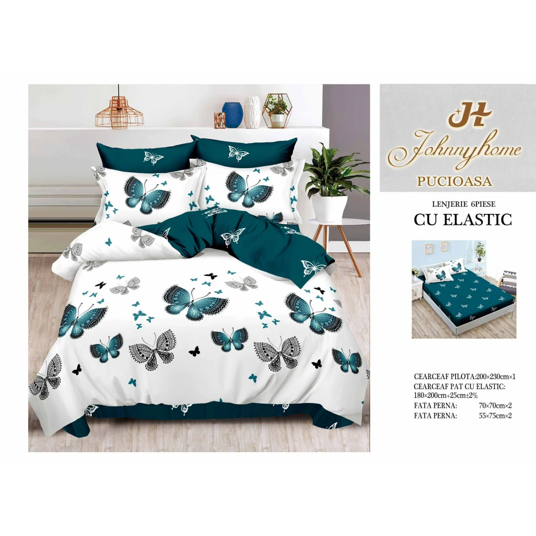 Lenjerie de pat pentru 2 persoane, finet, 6 piese model Fluturi