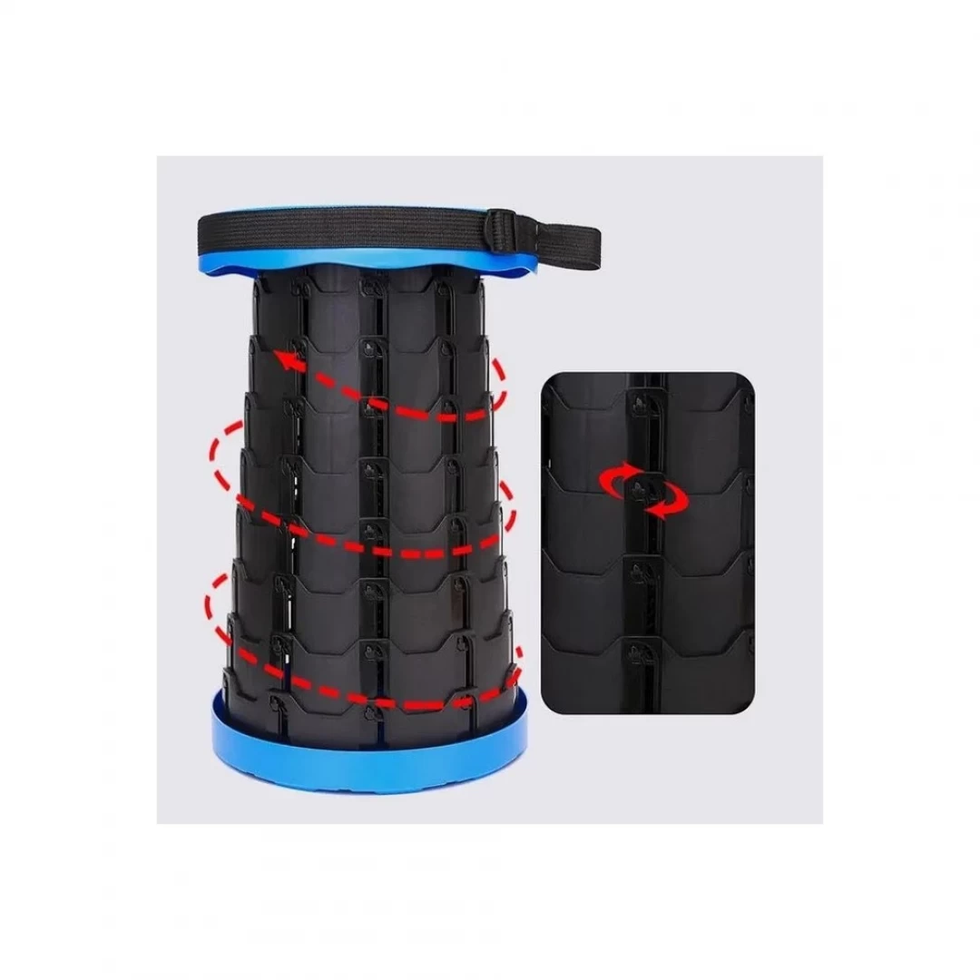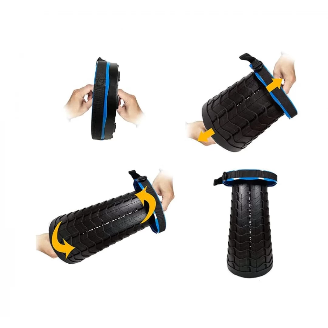 Cu o inaltime de numai 6 cm atunci cand este strans ,scaunul telescopic este portabil si ocupa foarte putin loc in bagaj.Usor demontabil si compact , poti pur si simplu sa agati scaunul retractabil de rucsacul tau si esti gata de drumetie .Tamburetul pliabil poate fi trasportat foarte usor si in mana sau pe umar ca o geanta acesta fiind dotat de un maner si o curea lai lunga care face transportul cat mai usor cum va este mai comod.