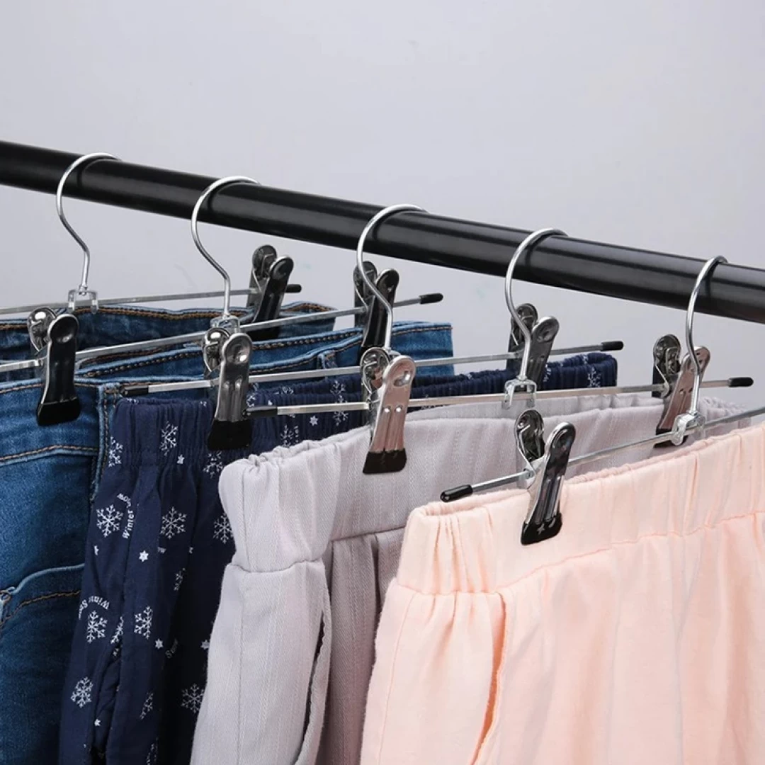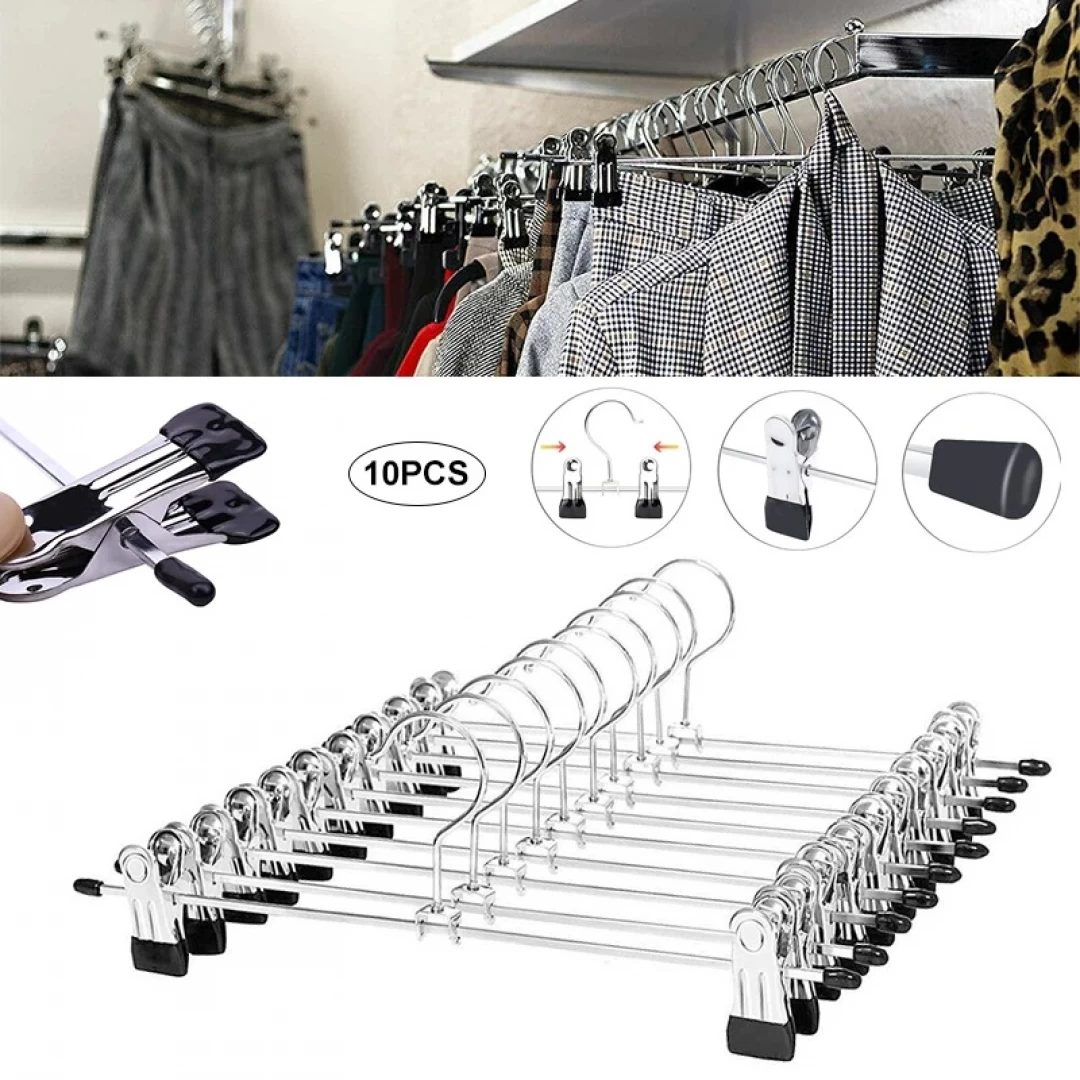 Umeras metalic, cuier pentru pantaloni, cu doua cleme antiderapante, carlig rotativ 360°, potrivit pentru pantaloni, fuste si sosete, bretele, noroi din seminte de pepene galben, 10 bucati
