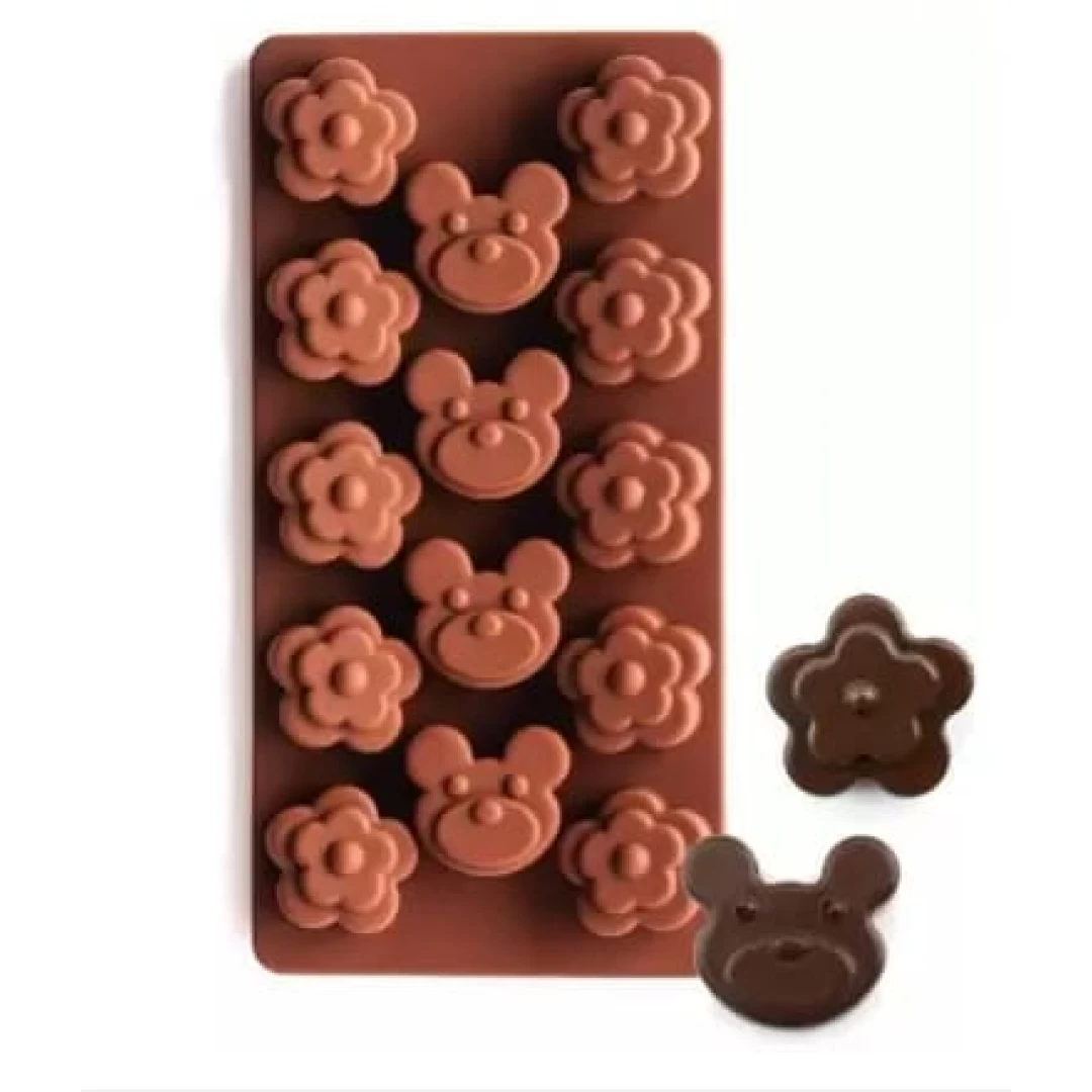 Set 2 forme pentru prajiturii din silicon,model ursulet,floricele si inimi