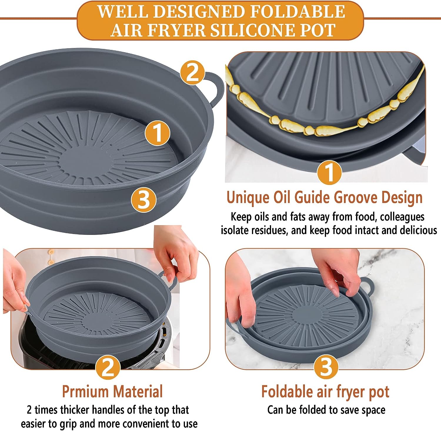 Set 2 tavi de silicon pentru friteuza de aer, termorezistent, diametru 19cm, pliabil, reutilizabil